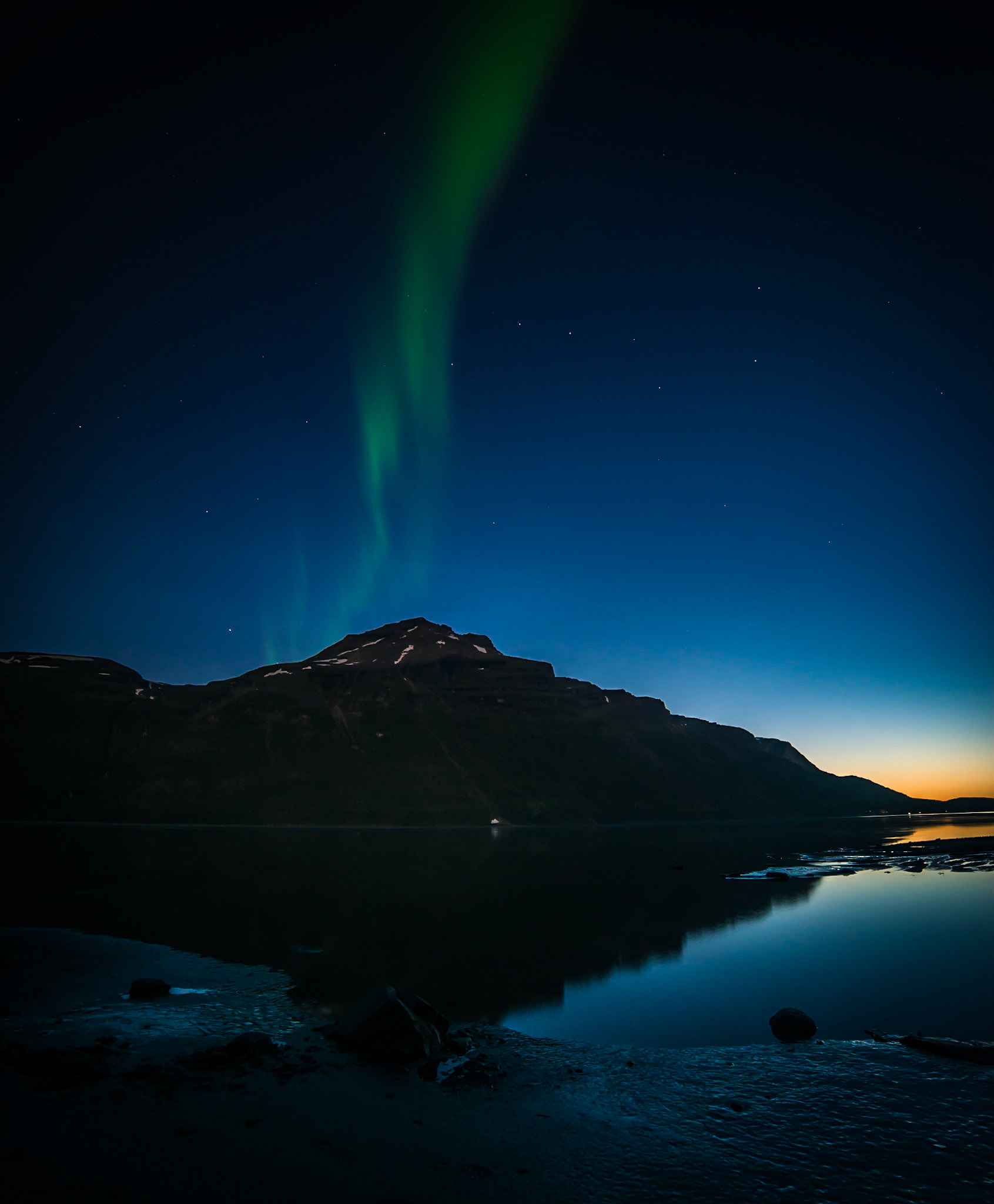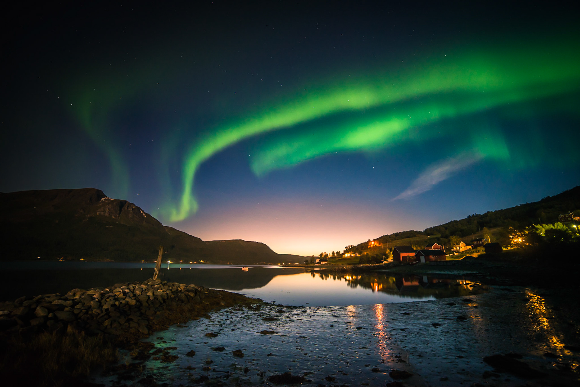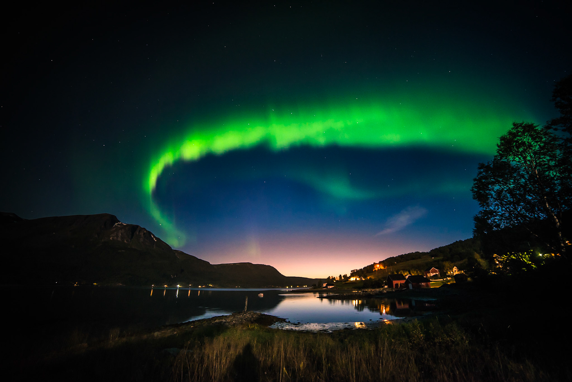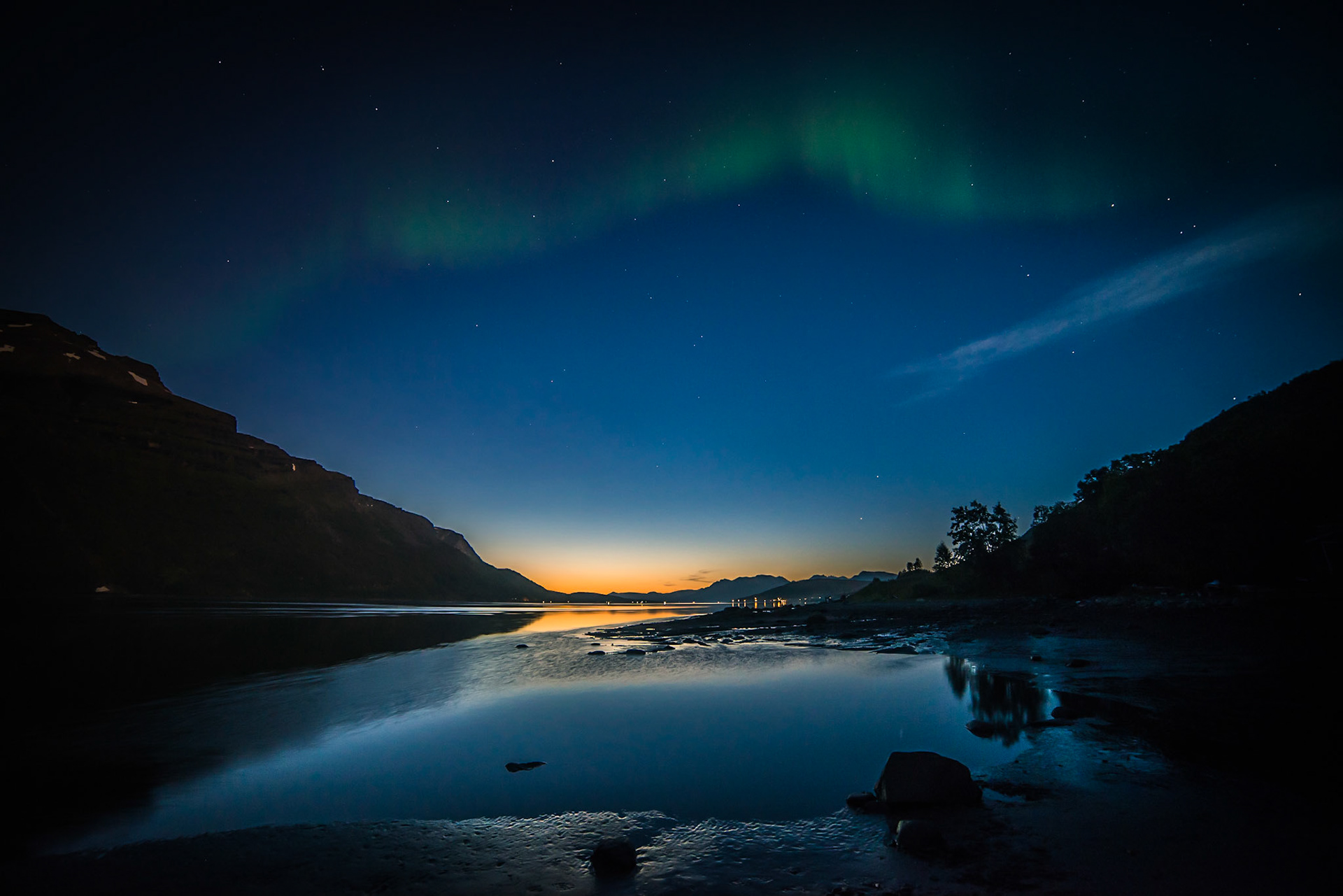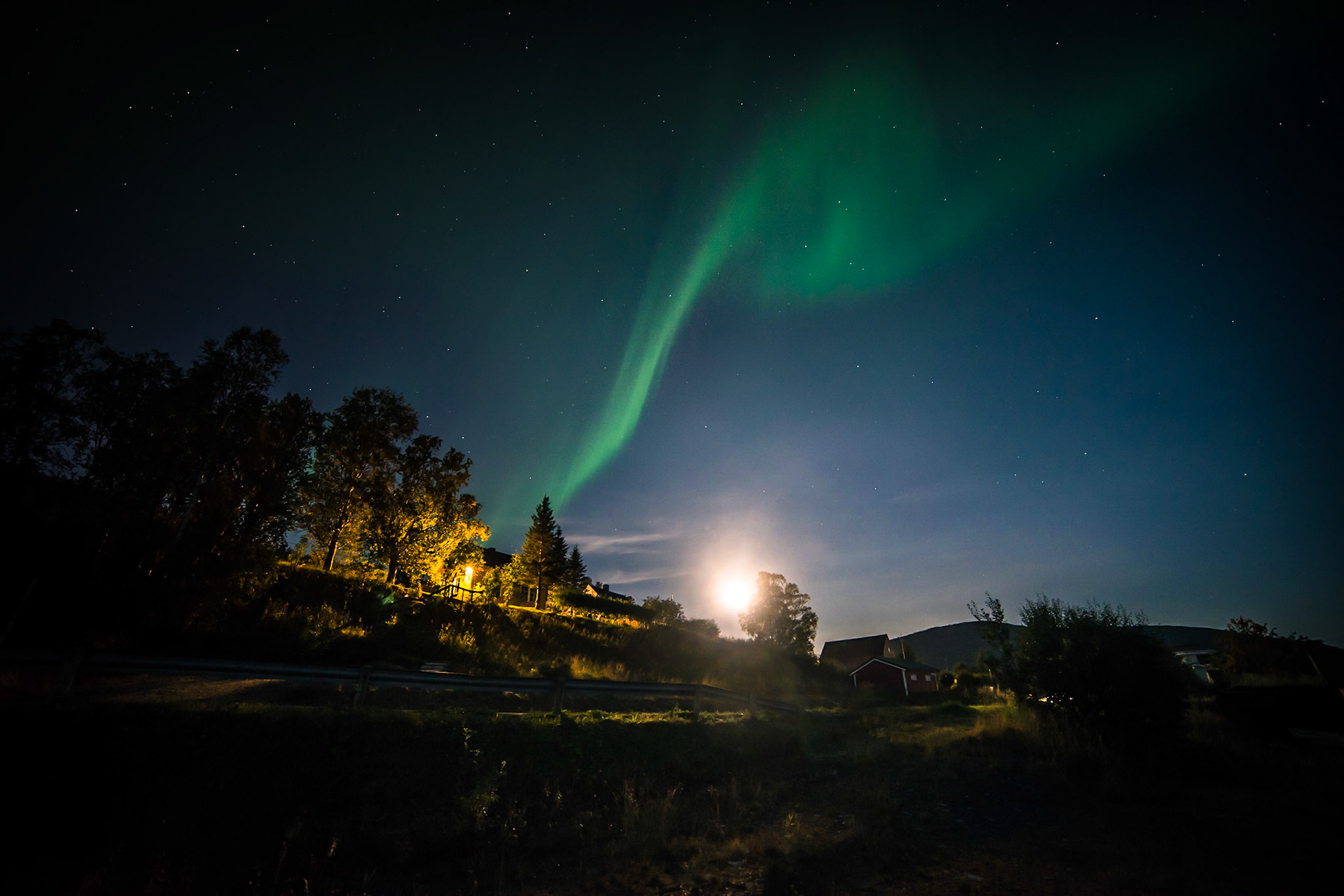 Nordlys og solnedgang på Målsnes 7. september 2017