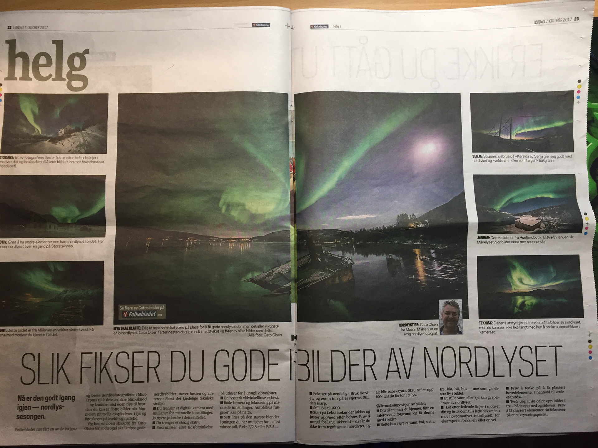 Jeg leverte en del bilder og tekst om å ta gode nordlysbilder til Troms Folkeblad, det stod i trykk lørdag 7. oktober på side 22 og 23. Her er tipsene i korte trekk: